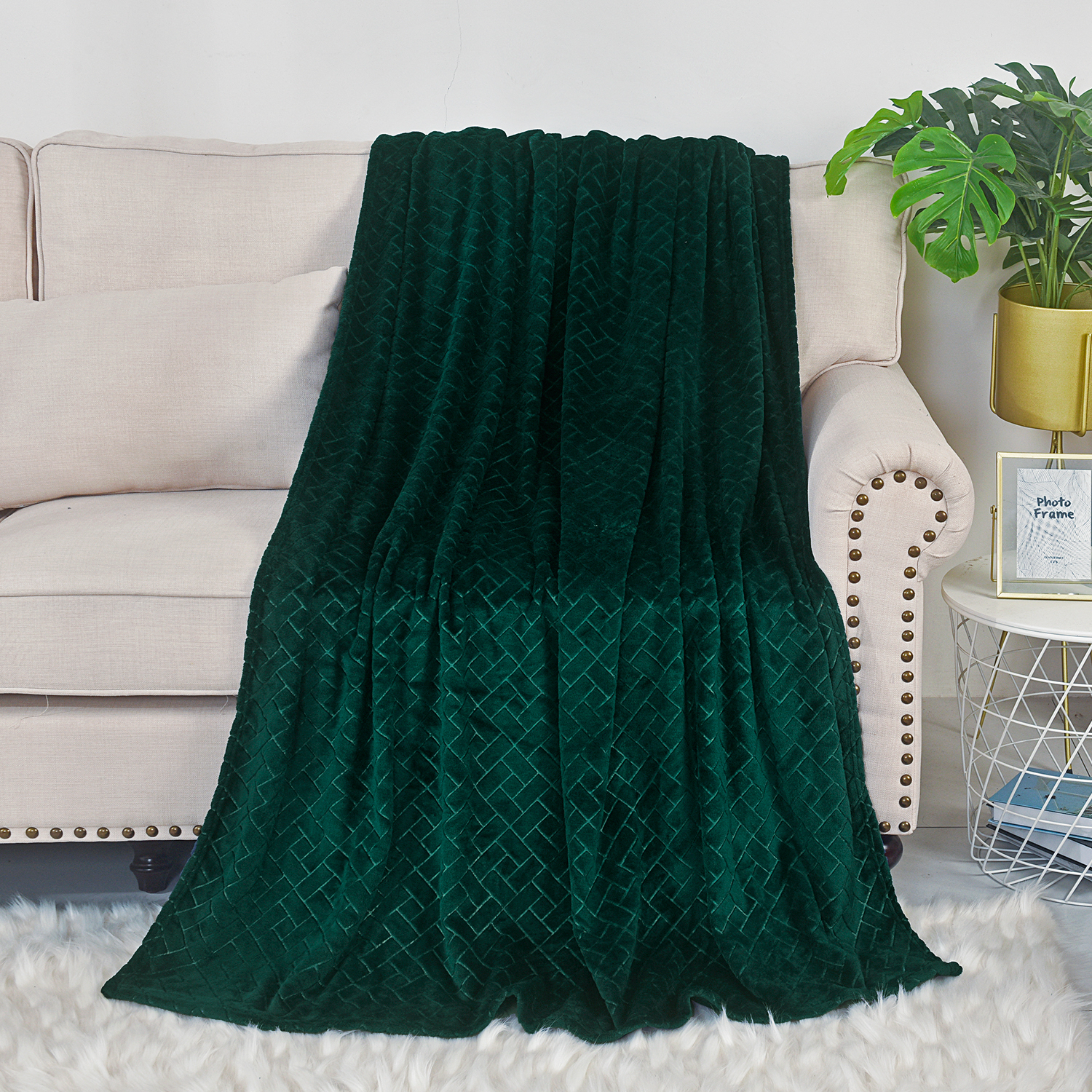 Efektowny koc w ciepłym ciemnozielonym odcieniu, którym pięknie udekorujesz swój salon lub sypialnię. Niezwykle miękka i miła w dotyku tkanina, z której uszyto koc sprawia, że z rozkoszą otulisz się nim każdego wieczoru. Ciepły i puchaty koc posłuży Ci zarówno jako przyjemne okrycie, jak i jako zjawiskowa dekoracja wnętrza. Tkanina o oryginalnej fakturze, którą dekoruje wzór dający wrażenie efektu 3D, pięknie zaprezentuje się na sypialnianym łóżku czy salonowej kanapie. Subtelny wzór koca podkreśli nowoczesny charakter wnętrza, nadając mu przy tym przytulnego klimatu. Z kolei modny ciemnozielony kolor ładnie dopełni każdej, modnej aranżacji. Miękki, starannie wykonany koc to praktyczny i piękny dodatek, który obowiązkowo powinien znaleźć się w każdym domu.